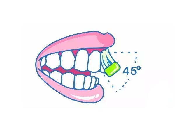 1、將牙刷放入口腔內(nèi),沿著牙齦線,讓牙刷與牙齦之間呈45度角左右,然后用指尖輕輕推動牙刷,沿著牙齦線緩慢移動,牙刷移動的同時,較長的刷毛能夠有效地清潔牙齒間的縫隙【其實這里用到的刷牙方式,便是巴氏刷牙法】;